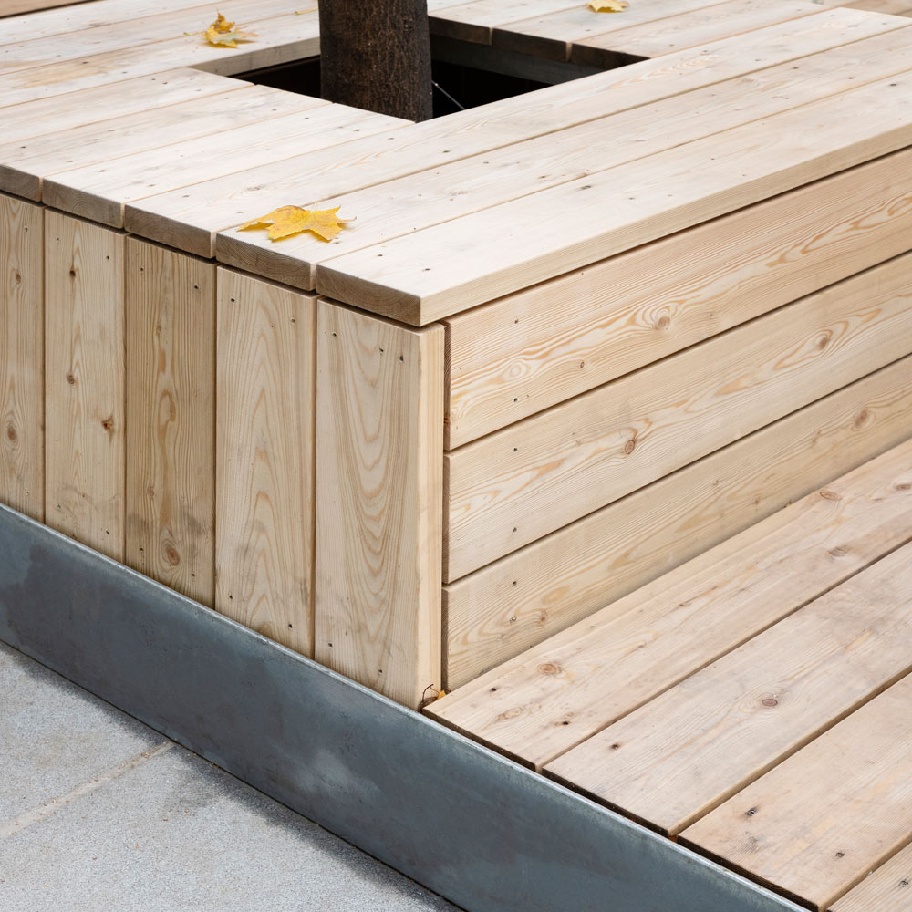 aus Lärchenholz schützt den Wurzelstock des Baums.
