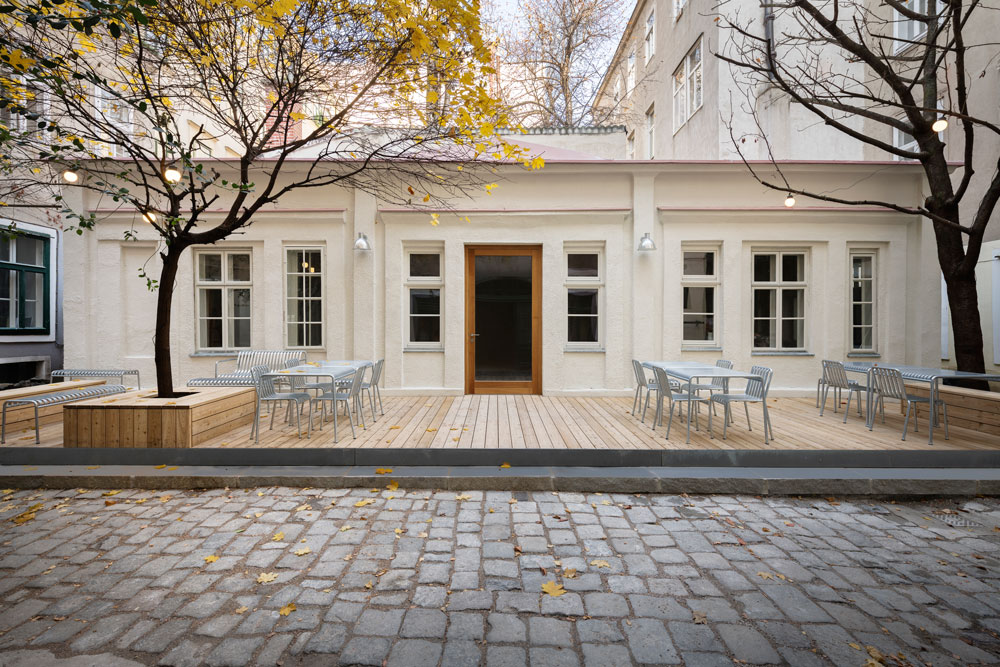 Als die Bauherrnschaft Ende 2018 erfuhr, dass das Café Kandl, ein in die Jahre gekommenes Lokal mit Gastgarten im 7. Bezirk, aufgegeben worden war, sahen sie das Potential und ergriffen die Gelegenheit sofort. Das Lokal wurde angemietet und sollte schnell auf Vordermann gebracht werden. Ein zeitgenössisches Wiener Kaffeehaus sollte es werden, zeitlos und dennoch aufregend, tagsüber familienfreundliches Frühstückscafé und Ort für einen schmackhaften Mittagstisch und abends die beste Cocktailbar Wiens. Doch wie schafft man es zwei vollkommen unterschiedliche Atmosphären zu erschaffen? Wie schafft man es gleichzeitig klassisch und modern zu sein? Die Antwort fand das IFUB* im