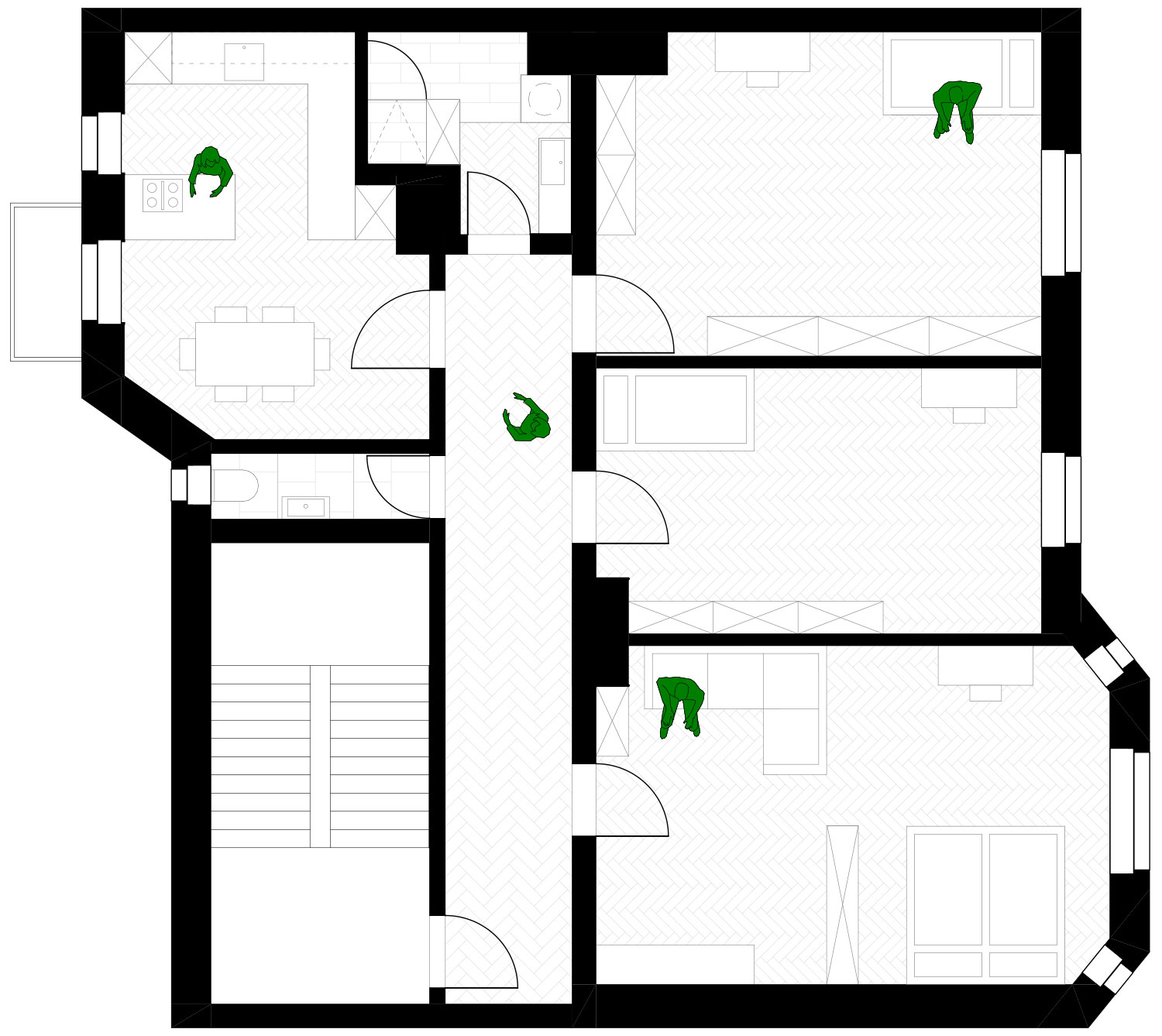 In den anderen Zimmern wurde wenig verändert. Lediglich im größten Raum, dem aktuellen Wohnzimmer wurde der dort noch vorhandene